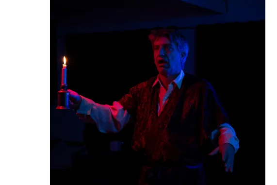 Un viejo actor, tras celebrar su despedida del escenario, se queda dormido en el teatro en estado de embriaguez. Al despertar en la oscuridad, comparte sus recuerdos y reflexiones con el apuntador, quien, desamparado, suele pasar allí las noches en silencio.