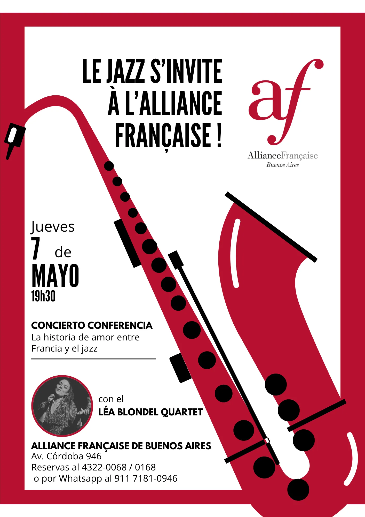 El proyecto «El jazz llega a la Alianza Francesa» es una conferencia musical liderada por Léa Blondel y su cuarteto de jazz, que propone explorar los vínculos entre el jazz estadounidense y la cultura francesa.